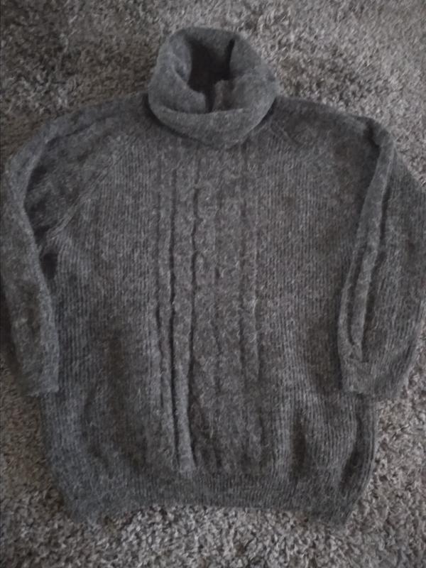 Тёплый, объемный, под горло свитер К сожалению бренд и состав срезан Но точно ощущается шесть, мохер Спущенная линия рукава Длина - 66см Полуобхват 60см Длина рукава от воротника 63 см