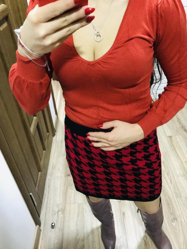 Кофточка морковного цвета с V-образным вырезом.