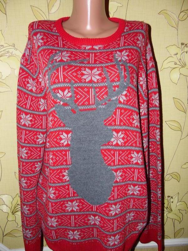 Новорічний свитр тм M&S Розмір XXL, Подвійна в'язка. ПОГ 64, ДЛ 74 Рукав від горловины 90
