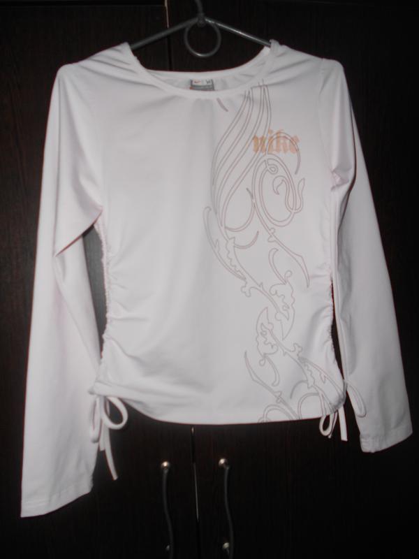Кофта Nike.Розмір 44.Трохи тягнеться. Колір білий з легким рожевим відтінком. ЗА 38 див. ПІТ 34 см. Довжина рукава від ворота 65 см. від плеча 57 см. Довжина по спині 50 див. Склад поліестер.