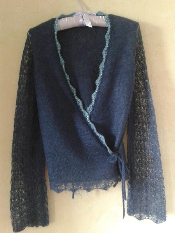 Размер S XS Красивая кофта с ажурными вязаными рукавами. Длина по спине 52 см. Длина по плечу 34 см. Длина рукава 62см. Кофта находится в идеальном состоянии. ОТПРАВКА НОВОЙ ПОЧТОЙ Без торга! Этикетка срезана(
