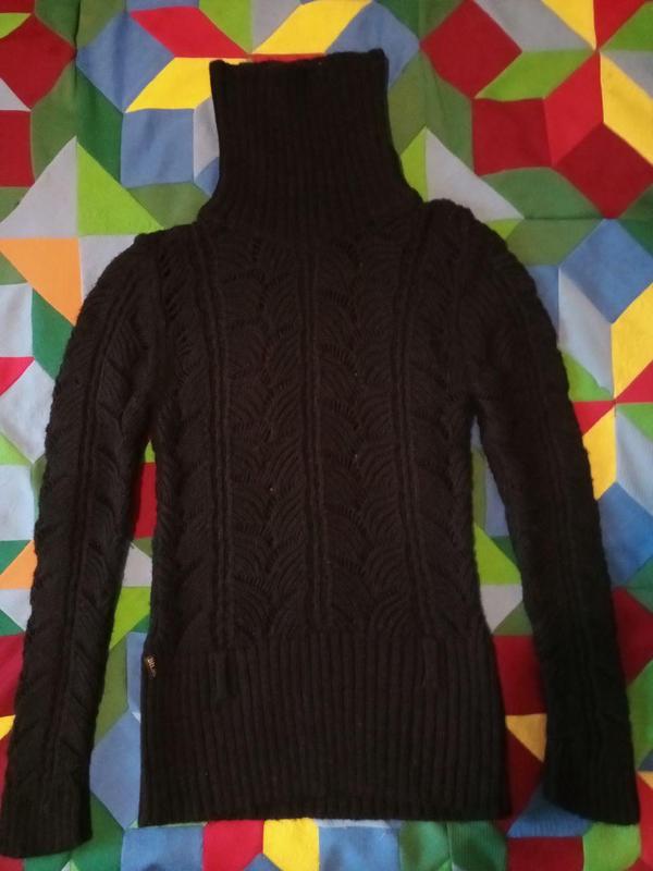Вязаный свитер с ажурным узором. Классический вариант для холодного времени года. Подойдет для рабочей обстановки и повседневной носки. Гармонично сочетается с брюками и джинсами контрастных светлых оттенков. Зрительно вытягивает силуэт. Ворот под горло сохраняет тепло. Для создания модели выбрана пряжа, включающая нити шерсти и акрила. Эластичное полотно обеспечивает красивую посадку по фигуре, независимо от индивидуальных особенностей телосложения и размера. Одежда прочная и долговечная, не теряет первоначальную насыщенность цвета в процессе носки и стирки. Черный свитер отлично впишется в базовый гардероб для осенне-зимнего сезона. Обхват груди - 82 см. Длина изделия - 66 см.
