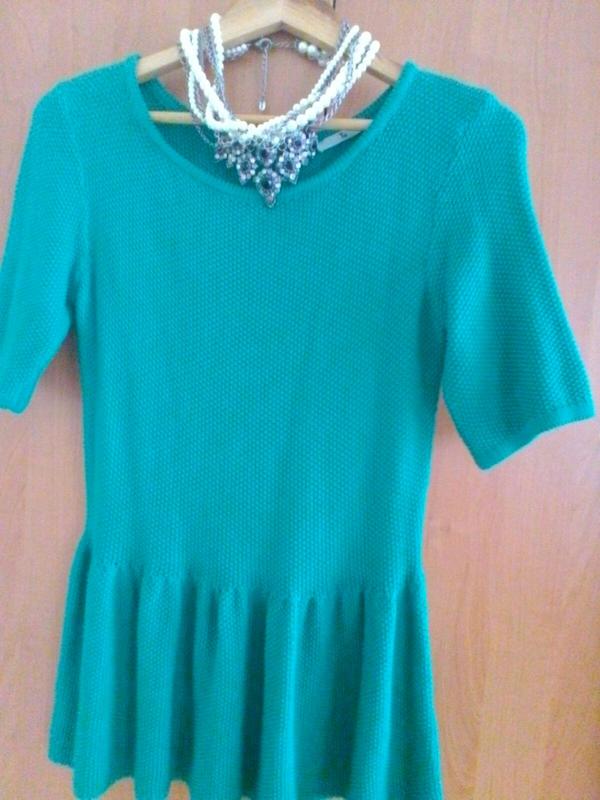 Гарна Кофта блузон з баскою, шикарний смарагдовий колір, модна в'язка, з замком на спині