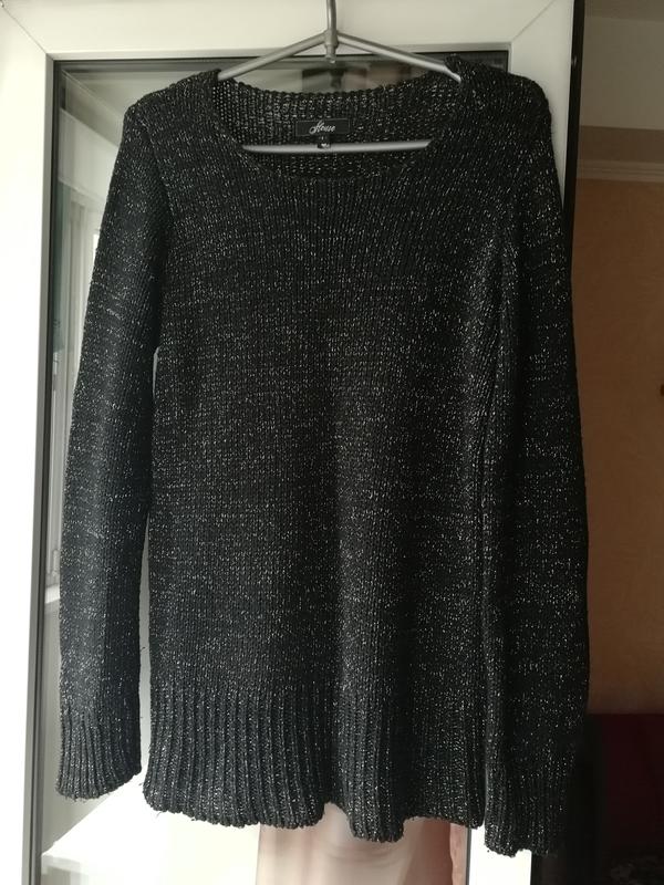 Гарний теплий чорний светр з блискучою ниткою. 📏Розмір L, але підійде і на більший. Пог 45 див. Напівобхват низу 46 см Довжина 70 см Рукав від плеча 69 див.