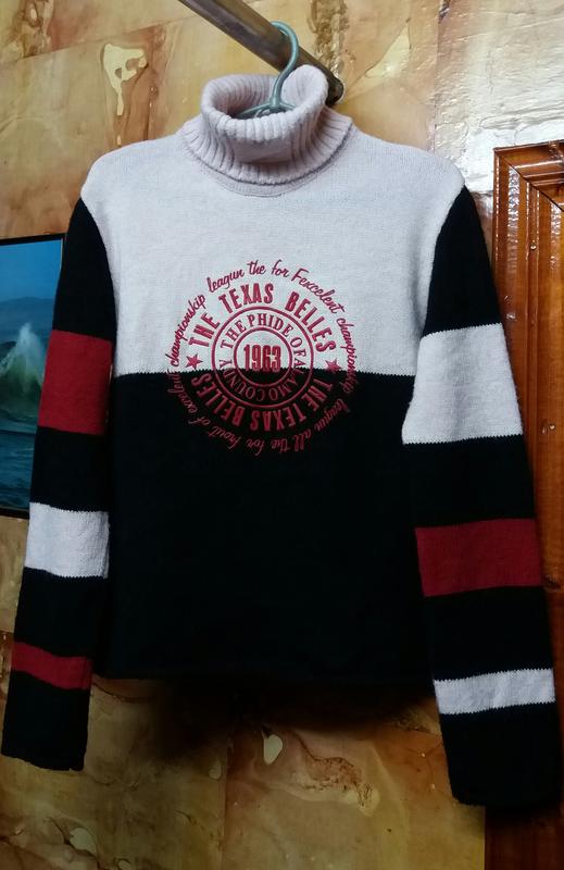 Свитер с высокой горловиной,очень мягкий и удобный. В хорошем состоянии. Подойдет на размер 46. Длина-52, ширина-45. рукав-60