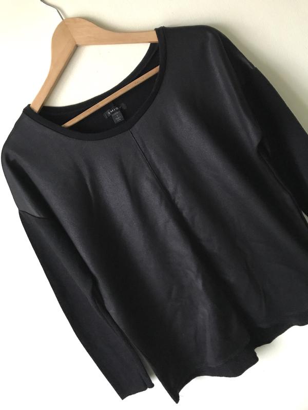 Кофта вільного покрою. Розмір S, але підійде і на М,L. Півобхват в грудях 56см. Довжина 63див. Тканина чорна котон, спереду йде тканина чорна з напиленням {має трішки блиск, перелив}, на фото видно.