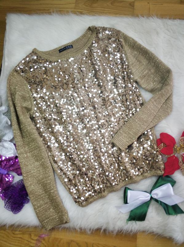 Яскрава кофта сведер в паєтках Atmosphere. Стан ідеальний. Розмір 18. Добре тягнеться, заміри вказано в натягнутому стані. ПОГ 53см ПІТ 53см Пояс на резинці Рукав 62cm Торгу немає, ціна мінімальна та остаточна.