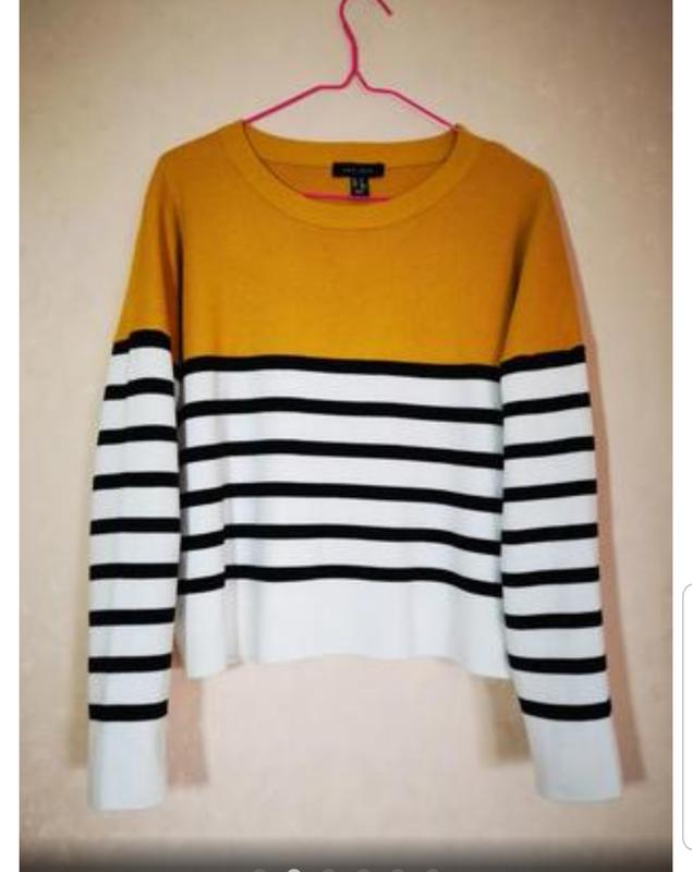 Цветной,гарный свитер.Полосатый.Черно -бело-желтый.(Желтый цвет-охра)👑 Пог 56 - 57см.должительно быть свободно..💝 Длина 50см Смотреет все мое объявления)