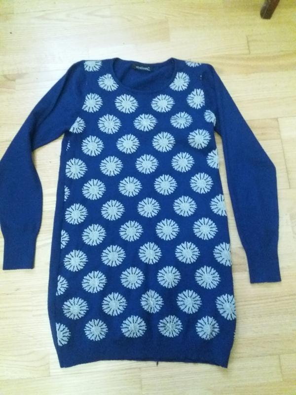 Ошатна туніка, приємна до тіла, спереду візерунок з золотими нитками. Плечі 31см пог 40см довжина 76см довжина рукава 59см.