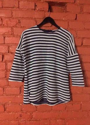 Кофта морячка, з трьохчетвертним рукавчиком і розрізами по боках! Темно сині полоски на котфі трішки світяться ( на фото видно!)