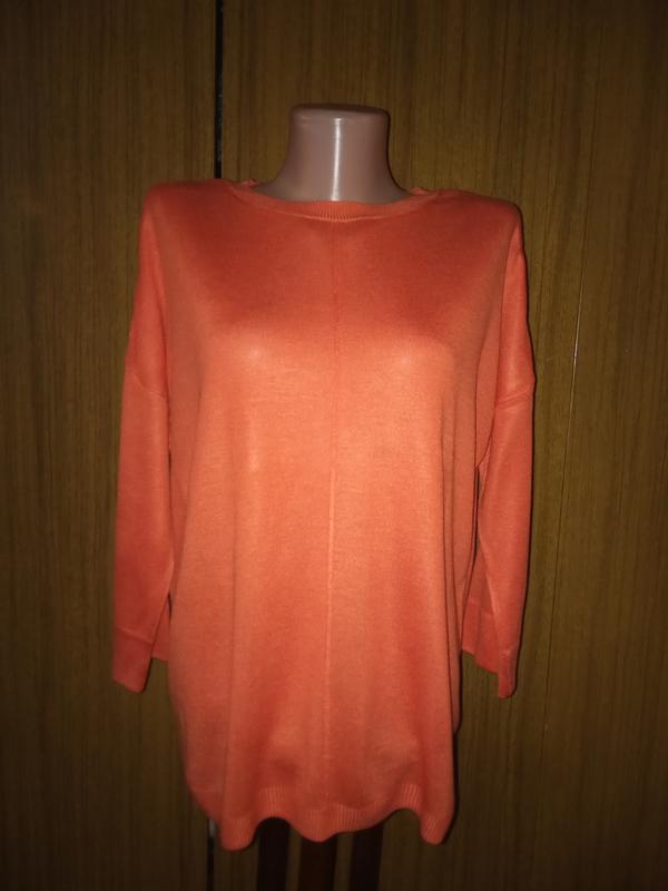Яркий свитерок. Очень приятный к телу. Спинка длиннее. ОГ 112 см ОТ 104 см ОБ 106 см Рукавчик от горловины 55 см Длина 60-64 см