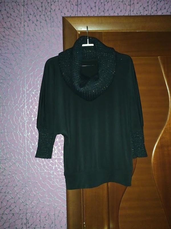 Дуже гарна кофта, дуже ефектно виглядає. Майже нова, без дефектів, без нюансів. Тканина тонкий стрейч-трикотин, декороване в'язаними манжетами та коміром. Колір чорний ( телефон спотворює колір). Це дійсно дуже ефектна річ, Ви не пожалкуєте, придбавши цей шедевр. Ідеально підійде на 38/М/46 - 40/L/48/.Пишіть відповім на всі питання. Рекомендую пересилку службою Justin (Джастін), якщо є така у Вашому місті, згідно акції 15 гр. будь відправлення, до 14.11.2020 . Я користуюсь, все швидко і дешево.