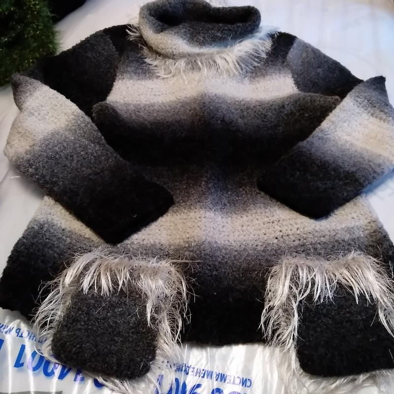 продам светр жіночий, подовжений, теплий. оригінальний фасон. ексклюзивна модель, в'язала собі, продаю так як багато в'яжу не встигаю носити.