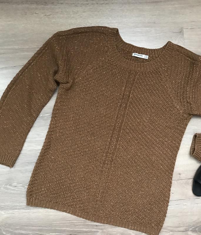 Стильный свитерок, вязка с люрексовой ниткой придаёт яркости и индивидуальности. Так же возможна продажа трикотажной юбки бренда Oodji размер S