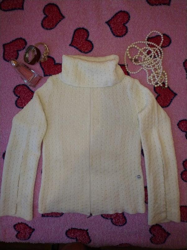 Дуже м'який, в'язаний светр, з цікавим декором рукавів, розмір 44-46, приємного молочного кольору