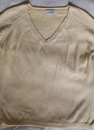свитер BASLER размер 46/ХL. полуобхват груди 55см. Длина от плеча и вниз 62см, 100%коттон,рукав идет 3/4. Цвет в реале бледно желтый.оригинал