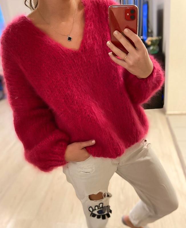 Яркий пушистый оверсайз свитер