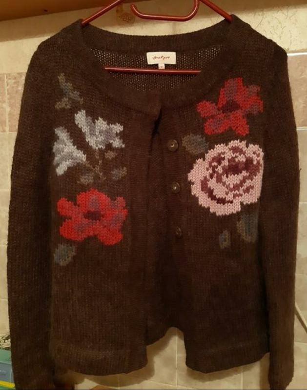 Незрівнянний вязаний кардиган,шикарне якість. Досить щільна в'язка. М'який,ніжний,приємний до тіла. Довжина-54 див.,ПОГ -42 див., ПІТ -38 див.,по низу -43 див.,плечі -37.5 див.,рукав від плеча -59 див.
