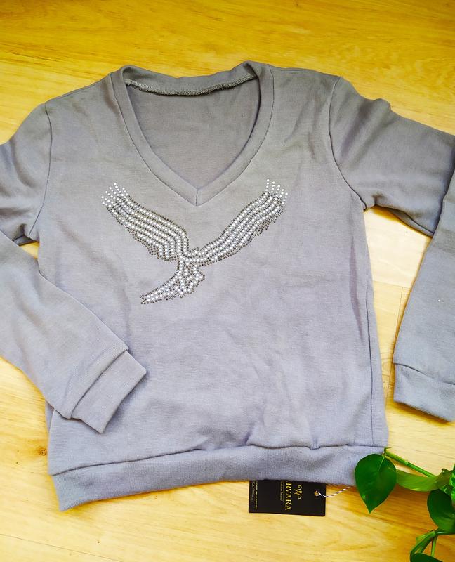 Гарна кофта із вирізом та стразами. Колір - сірий. Розмір 44-46 (М-L). Не тонка
