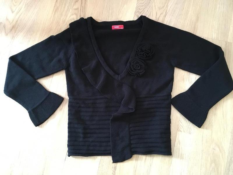 Свитер, размер L Ширина между под мышками 42 см. Длинная по спинке 53 см. Длина рукава по внутреннему шву 43 см.