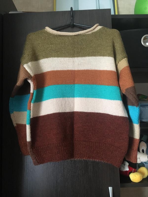 Свитер в идеальном состояние. Он двух сторонний . Его можно носить как передом так и задом. Смотрите первое и второе фото. Он очень тёплый. Длина 54 см, рукав 47 см.{ плечи чуть спущенные}.