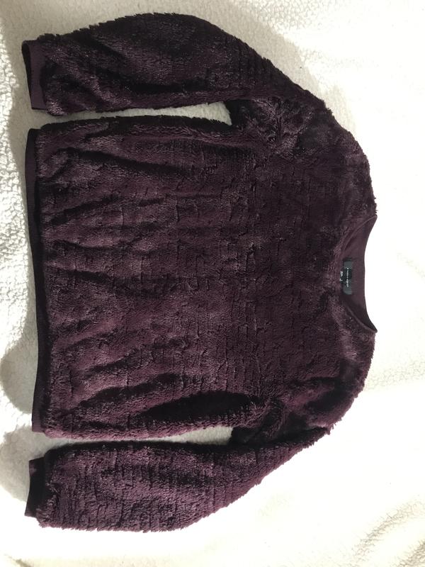 Бордовий светр з штучного хутра 100% поліестер,на котоновой підкладці,розмір 36-38 розміру, довжина спини 54 см, ширина під пахвами(грудей)50 см; довжина плеча 9 см; довжина рукава 58 см;дуже теплий, приємний до тіла.