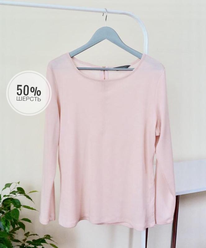 Тонкий светрик пудрово-персикового відтінку. Ззаду блискавка. Вказаний розмір XL Плечі 42 ПОГ 57 Довжина 70 Рукав 64 По низу 57 Склад: 50% вовна, 50% акрил Новий, без паперової бірки