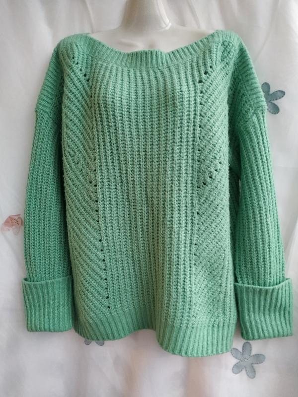 ВЯЗАНЫЙ СВИТЕР, ДЖЕМПЕР НЕЖНОГО ЦВЕТА. ПОГ 60 ПОБ. 58 ДЛ. 66