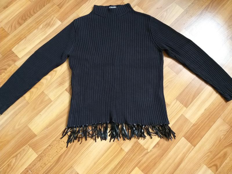 Світер бережу Court by Gerry Weber (Німеччина) прямого крою (підійде як на s так і на невелику l), з високою горловиною, внизу - бахрома із шкірозамінника. Довжина (без бахроми) - 58 см., ПОН 48 см, 50% - cotton, 50% - poliakryl.