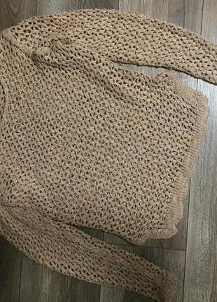 Цікавий светр з люрексом. Недолік - потягнувся. Заміри: Довжина - 65; ПОГ - 55; Рукав - 71. Відправляю укр і новою поштою тільки по передоплаті 100 грн або повної оплати на картку.