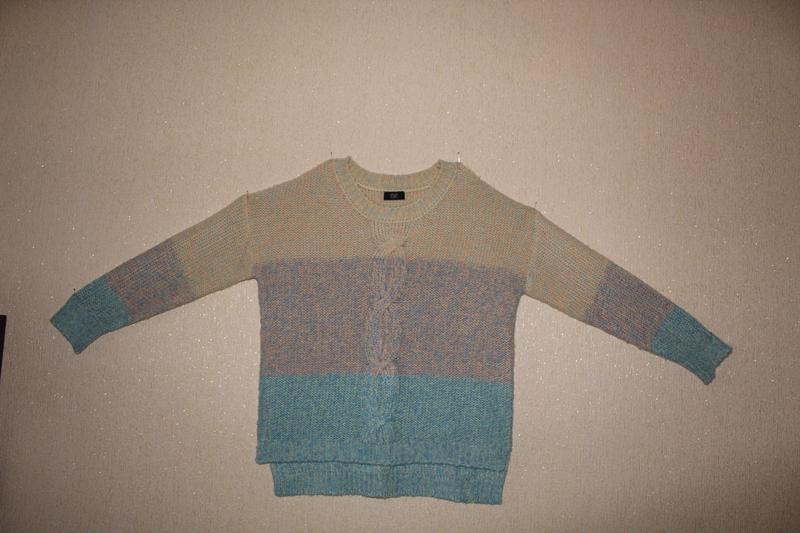 Стильный свитер F&F. Размер 12/40; плечи - 56 см. пройма - 34 см, рукав - 43 см, объем - 104 см, длина впереди - 56 см, длина по спинке - 62 см. Состав: 100% акрил. В отличном состоянии!