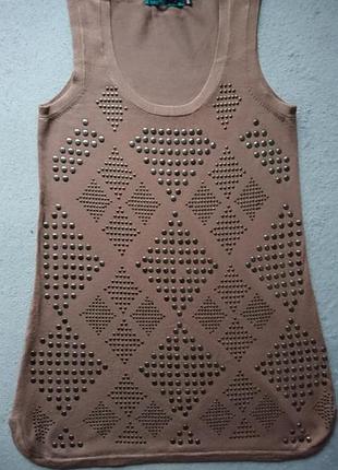 Оригінальна туніка - безрукавка Befree, р. S, у відмінному стані, не розтягнута, без катишек. Склад: 80% віскоза, 20% поліаміду. Тягнеться, приємна до тіла. Довжина - 75 Ширина під пахвами - 41 Ширина по низу - 56