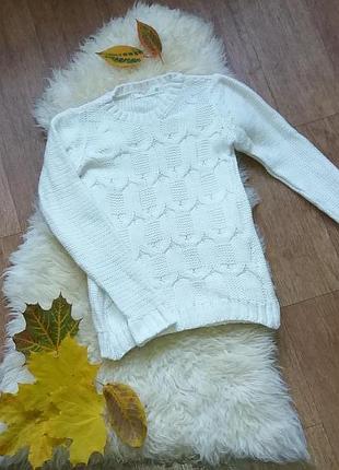 Красивий светр.Велика в'язка з візерунками.Виробництво Туреччина. У складі 50 % бавовни.Дефектів немає.