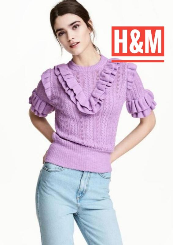 Сиреневая красотень. Очаровательный джемпер с короткими рукавами из текстурированной смеси хлопка. Круглый вырез горловины, двойной волан на груди, короткие рукава с двойным воланом, трикотажная резинка по горловине и широкая эластичная по подолу. 84% Хлопок, 16% акрил Оттенок сиреневый меланж. Размер по бирочке s, подойдёт и на xs. Новый, без бумажной бирочки, аутлет. Замеры по запросу. Стартовая цена официального сайта 40 евро. Смотрите, пожалуйста, все объявления, подписывайтесь, будет много интересного)