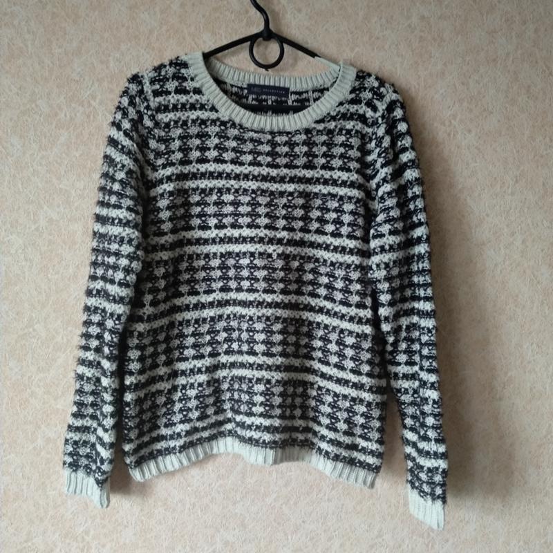 плечі 36 см під пахвами 54 см по низу 51 см довжина по спинці 55 см довжина рукава 62 см світер по дизайну має кошлаті чорні нитки