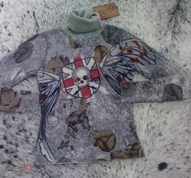 Компания из Лос-Анджелеса Raw 7 выбирает панковские принты ) Raw 7 специализируется на нижнем белье и трикотажной одежде из кашемира, шелка и кожи с принтами в стиле панк. Компания была основана в 2003 году. Продукцию этой компании уже выбрали Мадонна, Бен Аффлек, Дженифер Гарнет, Пэрис Хилтон и другие звезды. ______________ 100% кашемир. Мягкий ,тоненький, теплый.,яркий свитер Очень симпатичная расцветка,сфотографировала подробно-смотрите! Швы оверлочены нарочито грубовато,распорехи неглубокие внизу и на рукавах,*прическа*черепушки расшита мелким серебристым бисером. Абсолютно новый,с этикетками. . Мерки сняты в ненатянутом состоянии. Маркировка М,но маломерка,примерно на наш 42-44,,но смотрите внимательно мерочки! Длина по спинке 49.5 см,между подмышками 42 см,,длина рукава вместе с плечевым швом 74.5 см,