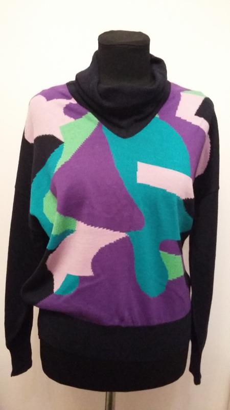 Светр . Основний колір темно синій практично чорний. Довжина 62 ПОГ 56 ПОБІДИ 45 в не розтягнутому стані, Фасон - кажан Бирка зі складом тканини є , але выстиралась і не видно що на ній зазначено.