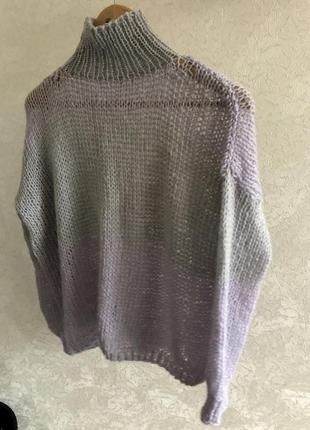 В'язаний светр з коміром, ручної роботи. Розмір-М.