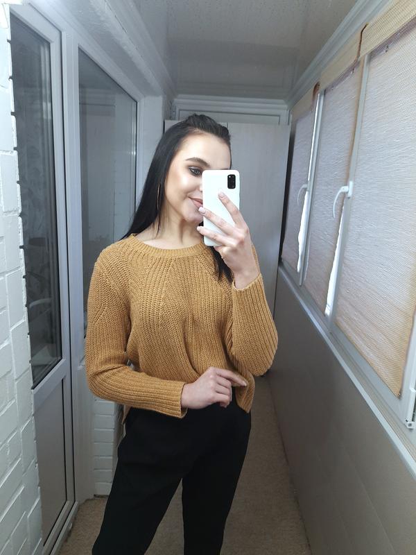 💜 У язаний светрик від H&M 💜 Ідеальний стан 👍 Колір коричнево-гірчичний. 💙 Склад: 60% котон, 40% акрил. 💙 Розмір М. Заміри: 🧡 плечі - 41см; 🧡 пог - 52см; 🧡 довжина від плеча - 53см; 🧡 рукав - 56см.