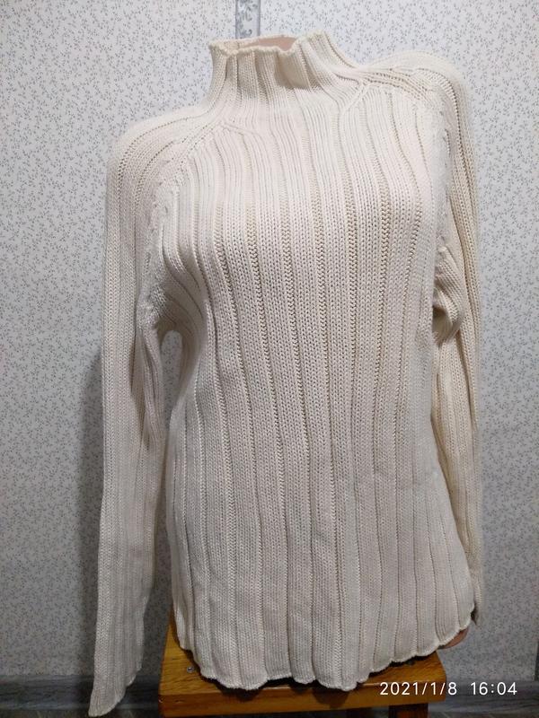 ПОГ-42, довжина рукава від умовного шва стійки горловини-79, довжина-70. Светр підійде як жінці, так і чоловікові. Колір кремовий.