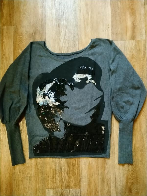 Красивий, м'який светр з принтом і паєтками, з оригінальним дизайном рукавів