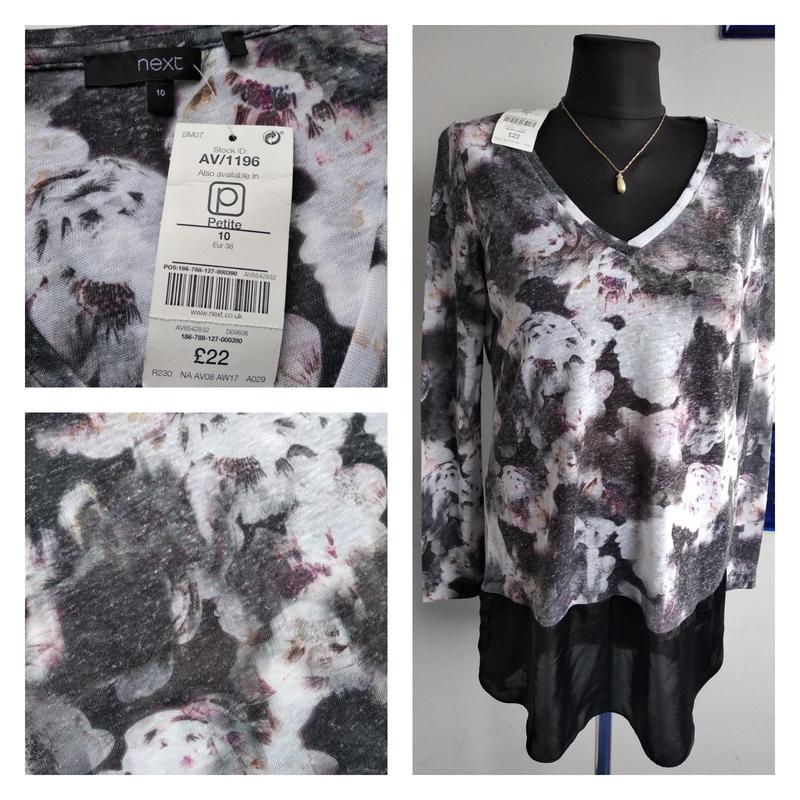 Эффектный удлиненный свитер-туника в нежный цветочный принт с контрастным низом от Next. Новый с биркой, цена на бирке 22 фунта, сток. Интересная узелковая фактура ткани засчет льна в составе, нежные серо-розовые размытые оттенки, трикотаж средней плотности, не толстый. Р-р на бирке uk 10, euro 38, маломерит, хорошо сядет на S как легкий oversize, сверяйте с замерами. 🌹 Длина от горловины перед 78,5 см ☕️ Длина спинка 82 см 🌹 Плечи 33,5 см ☕️ ПОГ 47 см 🌹 Талия 45 см ☕️ Ширина по низу над черной отделкой 49 см 🌹 Рукав от горловины 67 см ☕️ Рукав от плеч. шва 61 см