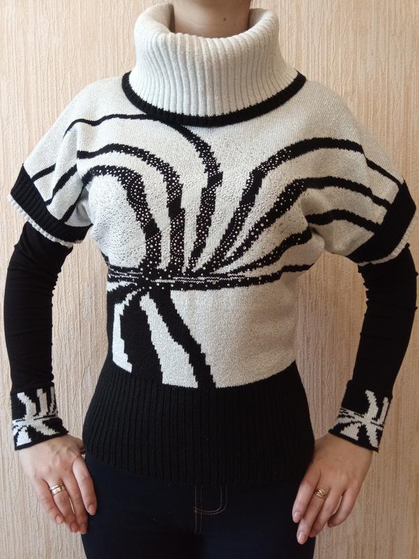Водолазка черного цвета, из качественного материала. Теплая желетка с воротником. Можно носить как вместе так и раздельно. Желетка украшена стразами, все камни на своих местах. Пойдет на S-M