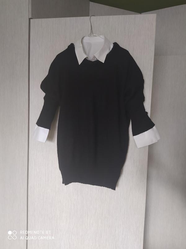 Рукав 3/4. Ззаду гарна спинка, бантики, горловина косичка. Удлененный.