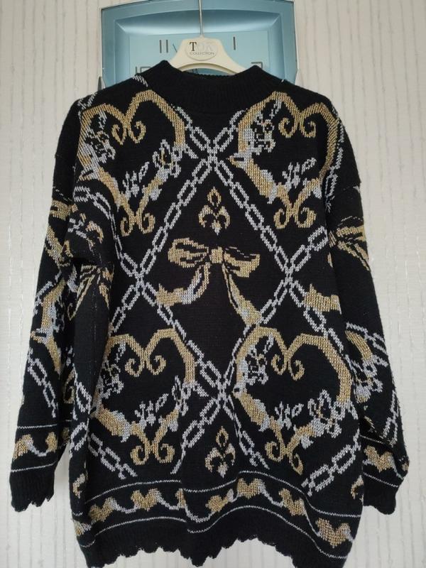 Гарний, ошатний светр оверсайз. Малюнок витканий на полотні. Виглядає дуже красиво.
