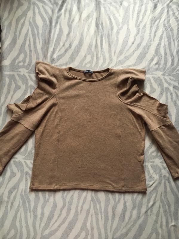 Кофтинка з відкритими плечима та воланами на плечах бренду ZARA