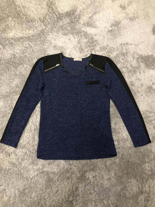 Кофтинка з замочками на плечах, темно-синього кольору під джинс