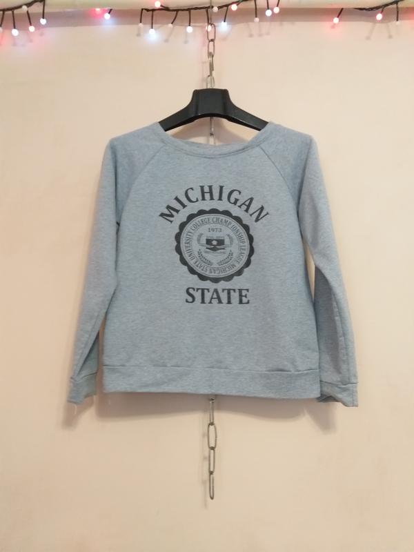 Вільна спортивна кофта. ПОГ 48 див. ПІТ 45 см. Ширина низ 43 см. Довжина 56 см Довжина рукава від шва 56 см. Ширина спинки 40 см Тканина трохи тягнеться.