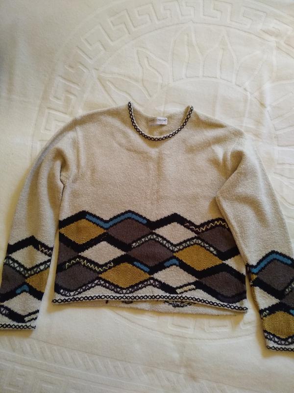 светр жіночий , розмір M ,тканина букле ( склад шерсть 37%, поліакріл 37%, поліамід 26%.) Довжина по спинці 54 см ПО грудях 51 см ПО стегон 49 см