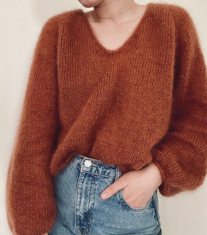 Легкий, теплий і дуже м'який светр на кожен день. Сплетений вручну з кід мохеру на шовку. Пряжу замовляємо з Європи. Підійде людям з чутливою шкірою. Гіпоалергенний.